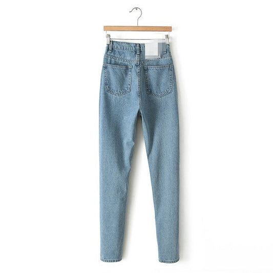 European and American boutique stretch cotton hole Boyfriend pencil feet pants