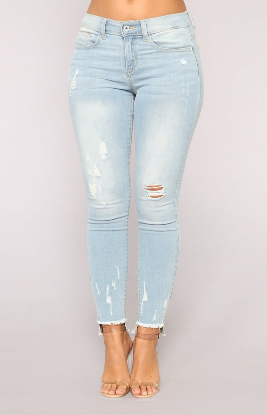 Europe and the United States Fan Slim solid color hips stretch thin fashion knee hole jeans