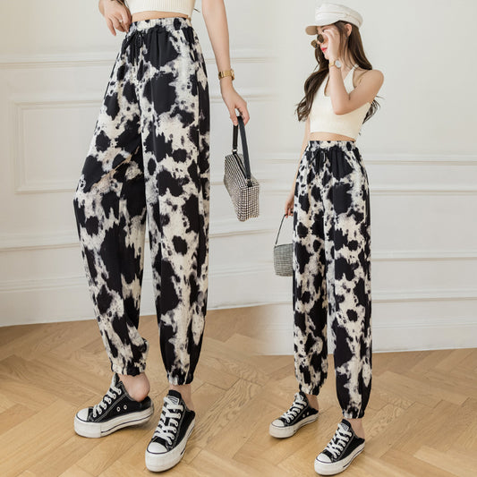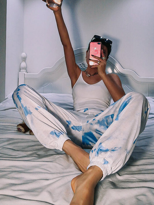 Fashion Ladies Ink Painting Tie Dye Casual Sports Pants