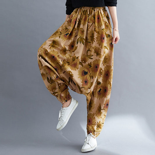 Folk Style Loose Cotton Linen Pants Crotch Knickerbockers