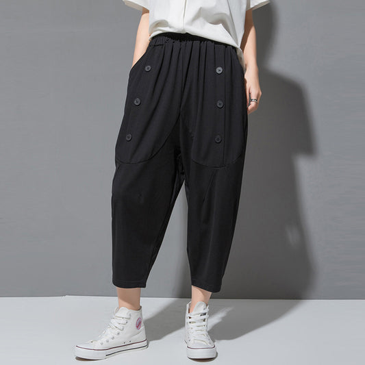 Lun Trousers Women Elastic Waist Loose Large Size
