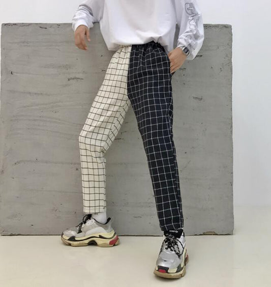 New High-waist Plaid Pocket Cropped Trousers