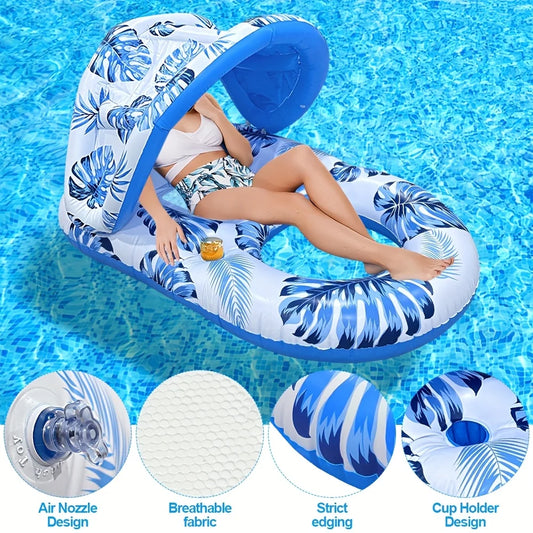 New outdoor inflatable leaf pattern lounge chair floating row multifunctional with cup holder water floating bed inflatable floating row