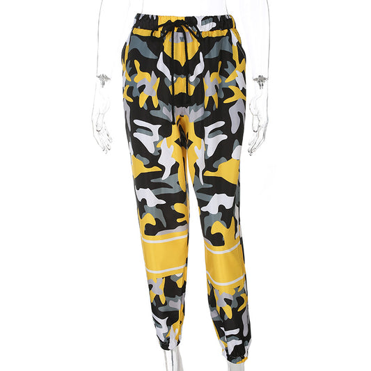 New camouflage hit color high waist casual pants