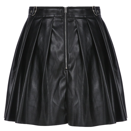 Pleated skirt female punk metallic dark leather leather pleated skirt female high waist slim skirt