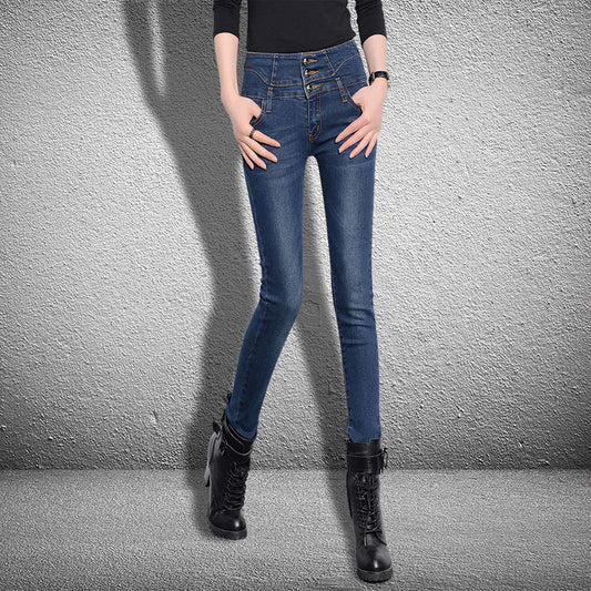 Spring And Autumn Korean Style High Waist Slim Slimming High Stretch Cotton Jeans
