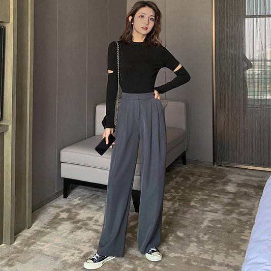 Spring New Loose Chic High Waist Korean Student Straight Suit Pants Women