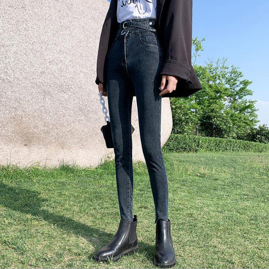 Temperament Split Mid-length High-waisted A-line Thin Hip-length Skirt