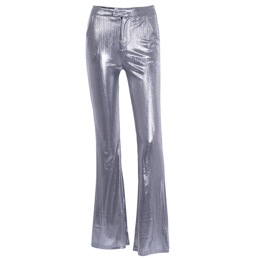 Trousers silver gilded zipper OL commuter loose high waist casual wide leg pants