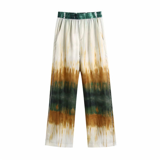 Tie Dye Printing Fashion Casual Ladies Short Pocket Loose High Waist Women's Pants