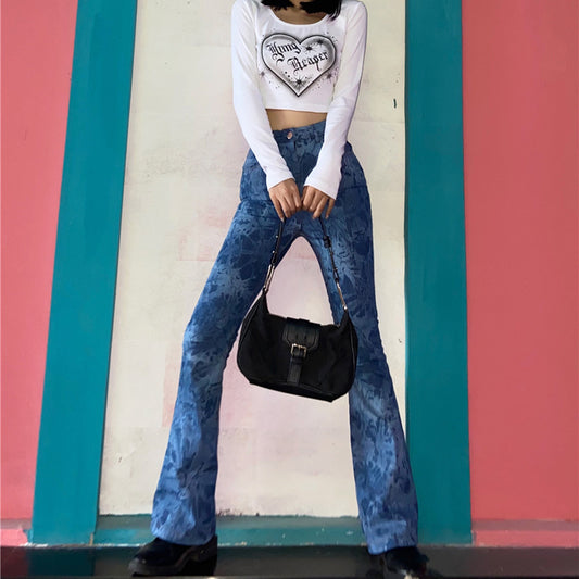 Women's Tie Dyed Bootcut Jeans High Waist Slim Skinny Fit