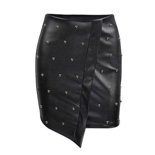 Casual wild beaded leather skirt
