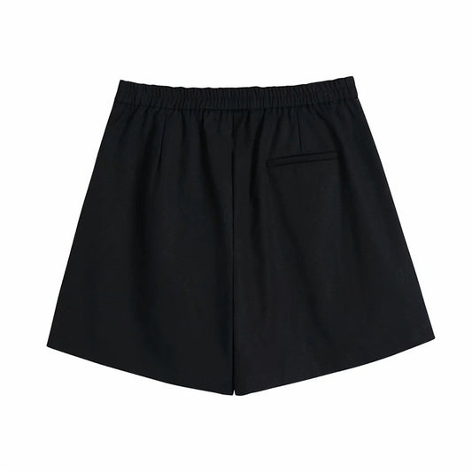 Casual Shorts With Elastic Waist Pleated Decoration
