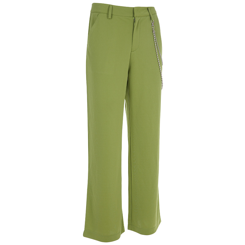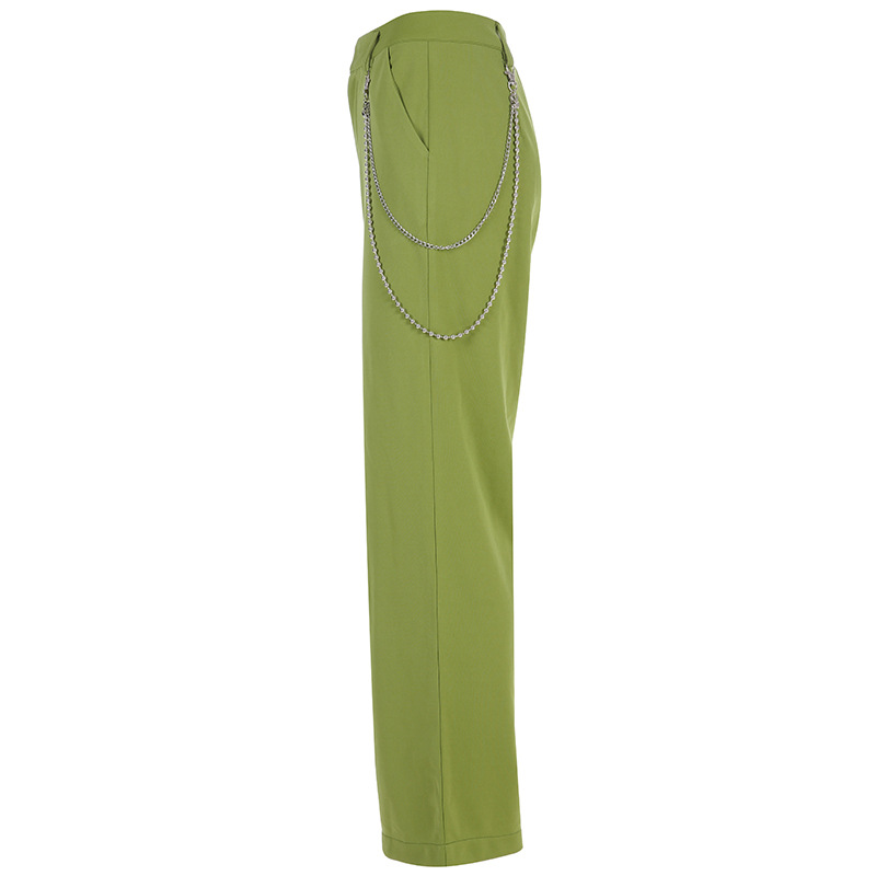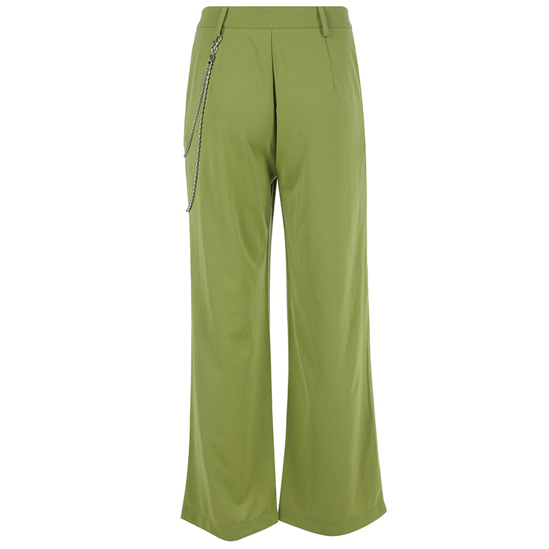 Wide leg pants female Europe and the United States 2021 summer hot metal chain decoration loose wild casual wide leg pants slim trousers