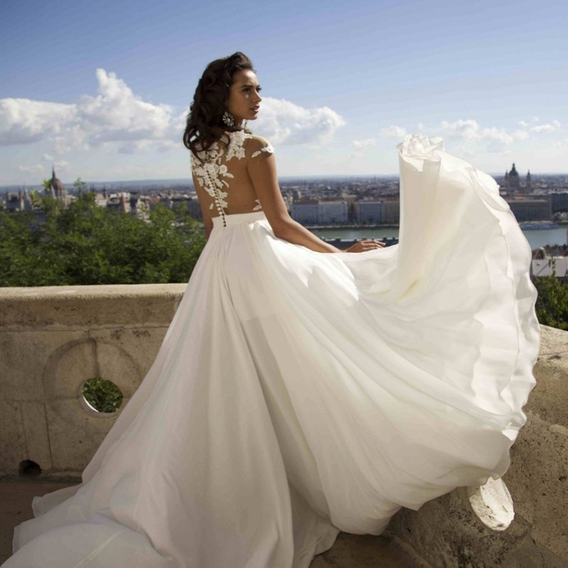 Bohemian wedding dress A word applique floor length chiffon bride dress custom side elegant wedding dress