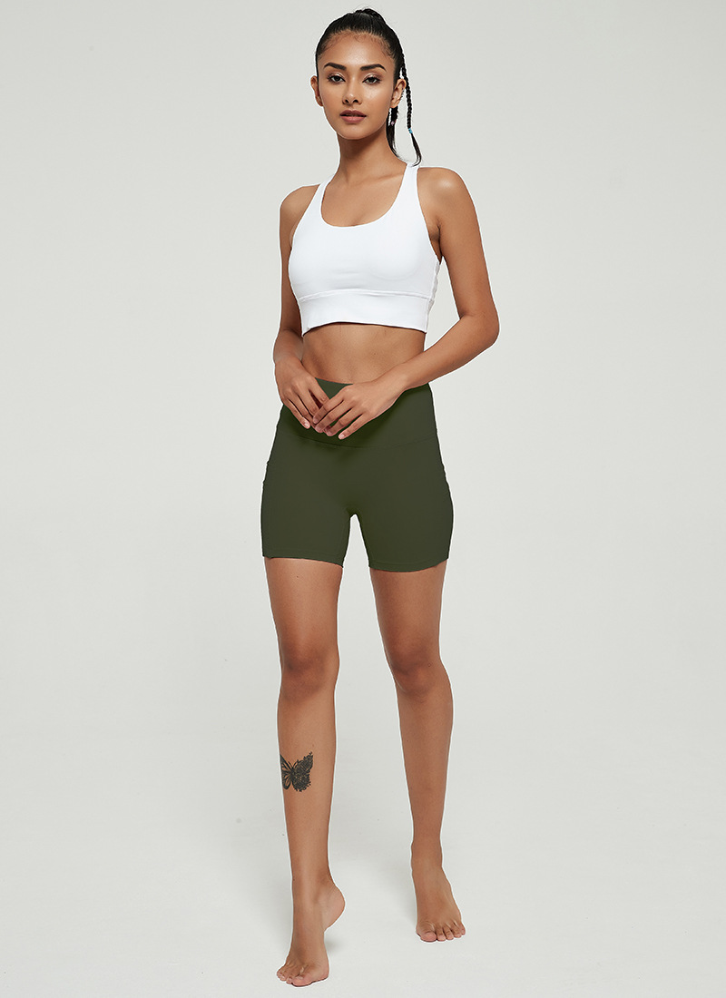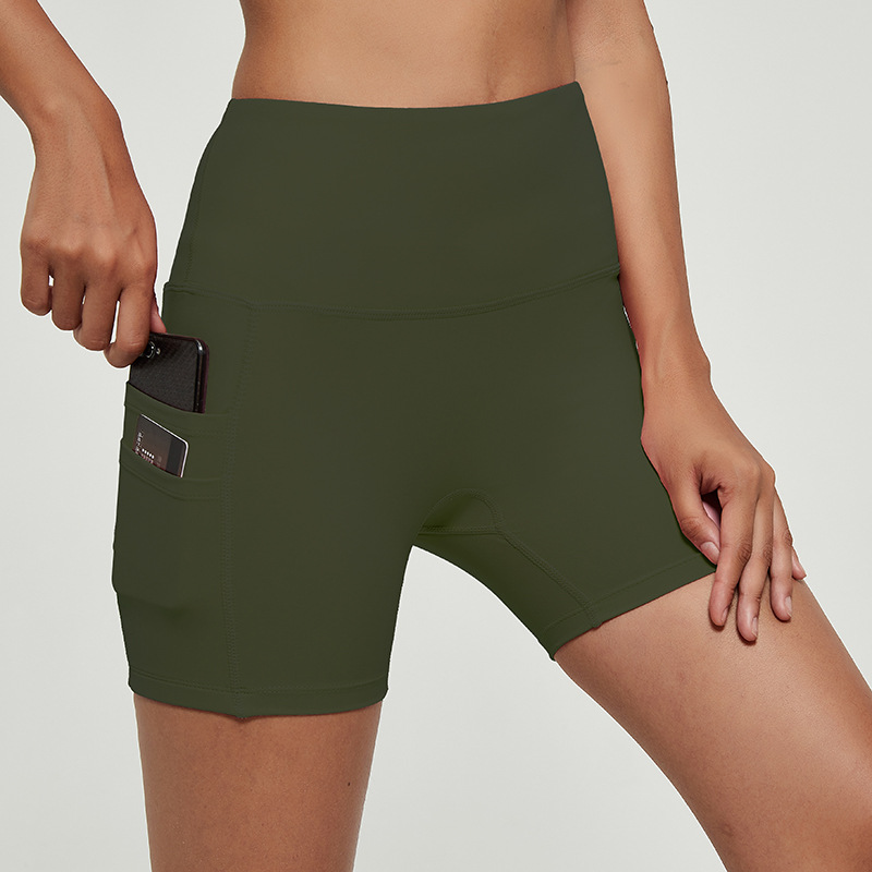 Pocket European And American Yoga Pants Summer Breathable Peach Butt Shorts Sports Tight Three-point Pants