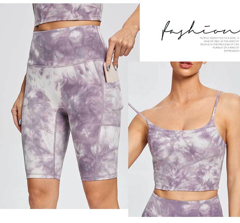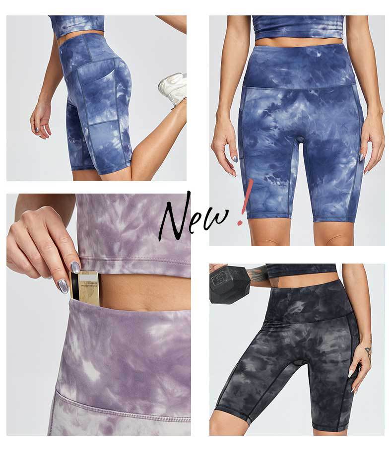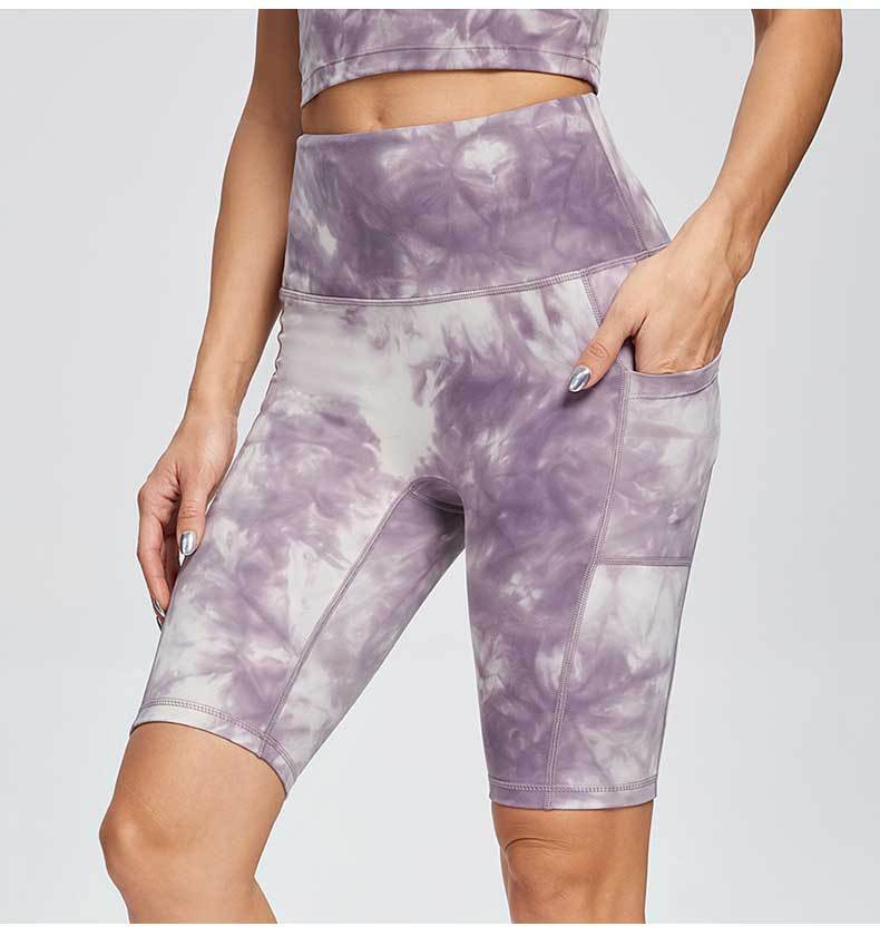 Nude Yoga Pants Women No Embarrassment Line High Waist Hip Tie Dye