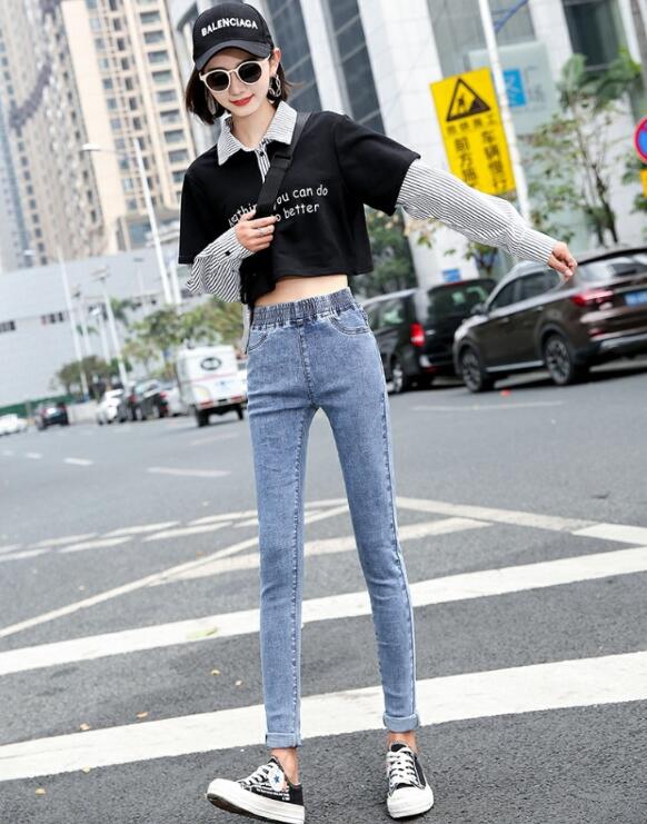Elasticated waist jeans tight pants
