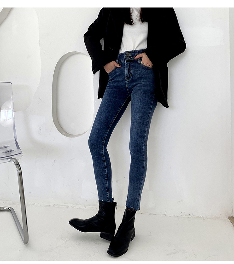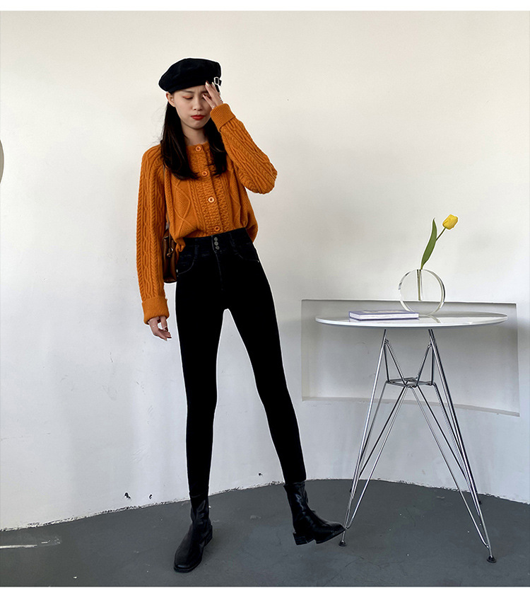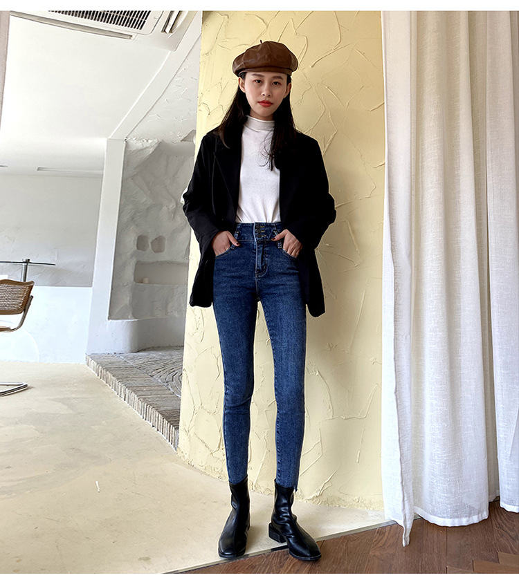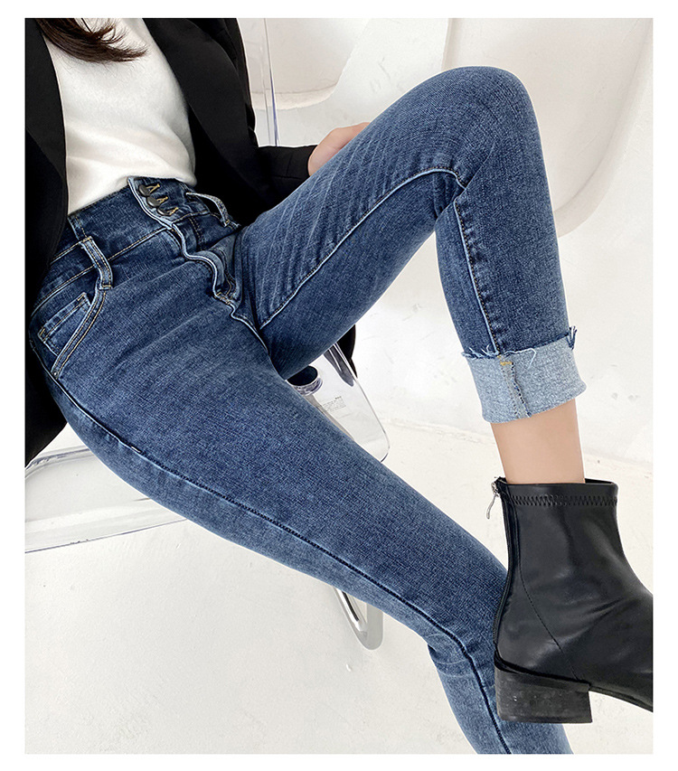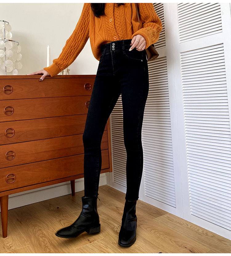 Fleece high waist jeans women's feet fall and winter