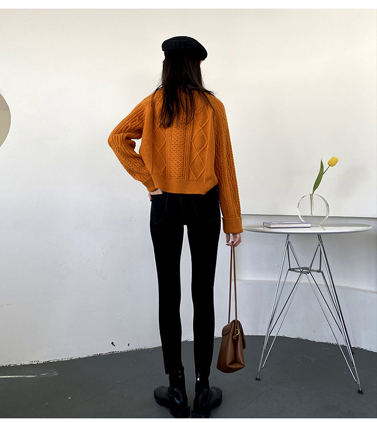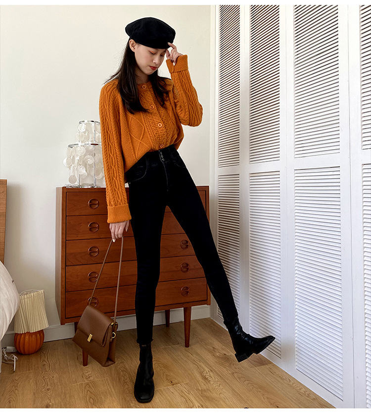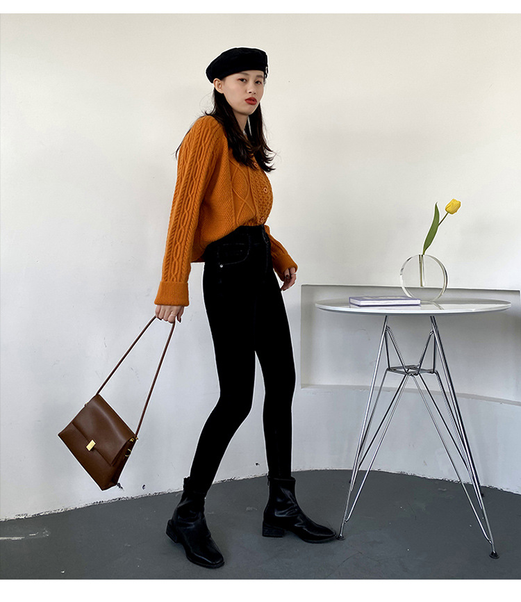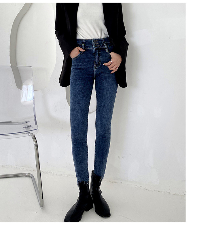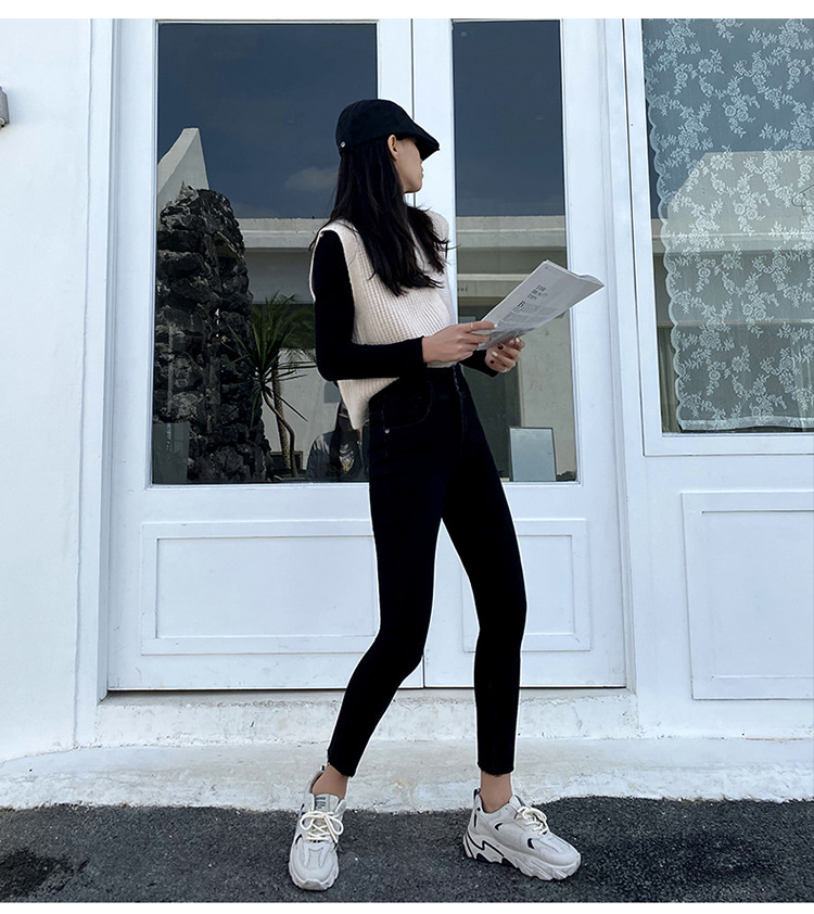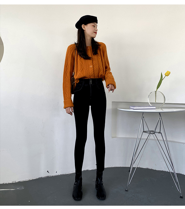 Fleece high waist jeans women's feet fall and winter