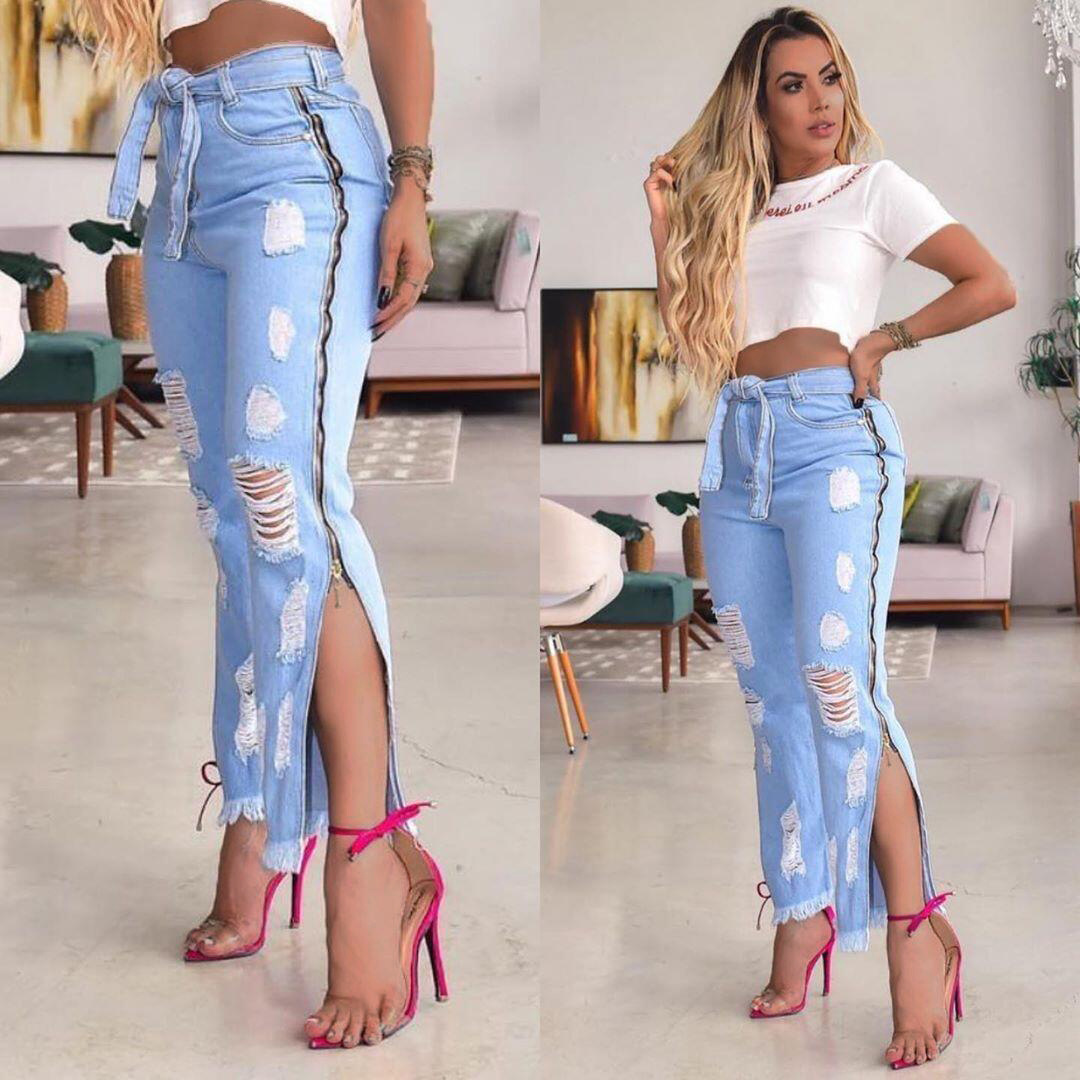 Popular elements: zipper, women's bandage, pocket, hole, split pants, nightclub clothes