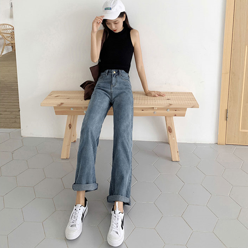 High-waisted Jeans Women's Loose Large Size Slimming Drape Wide-leg Pants
