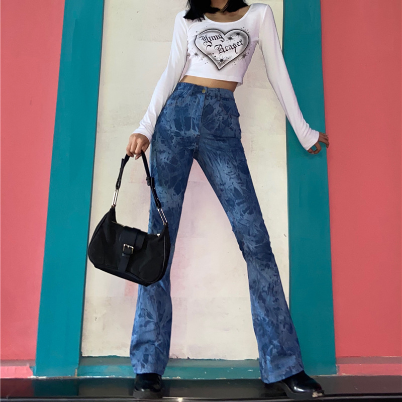 Women's Tie Dyed Bootcut Jeans High Waist Slim Skinny Fit