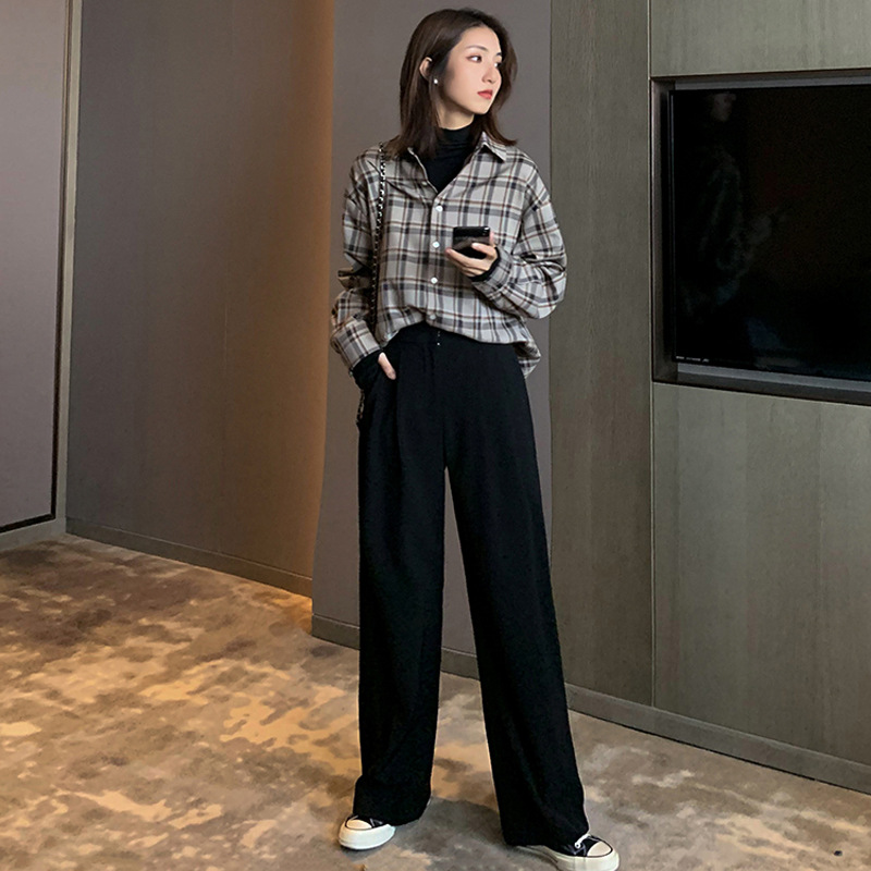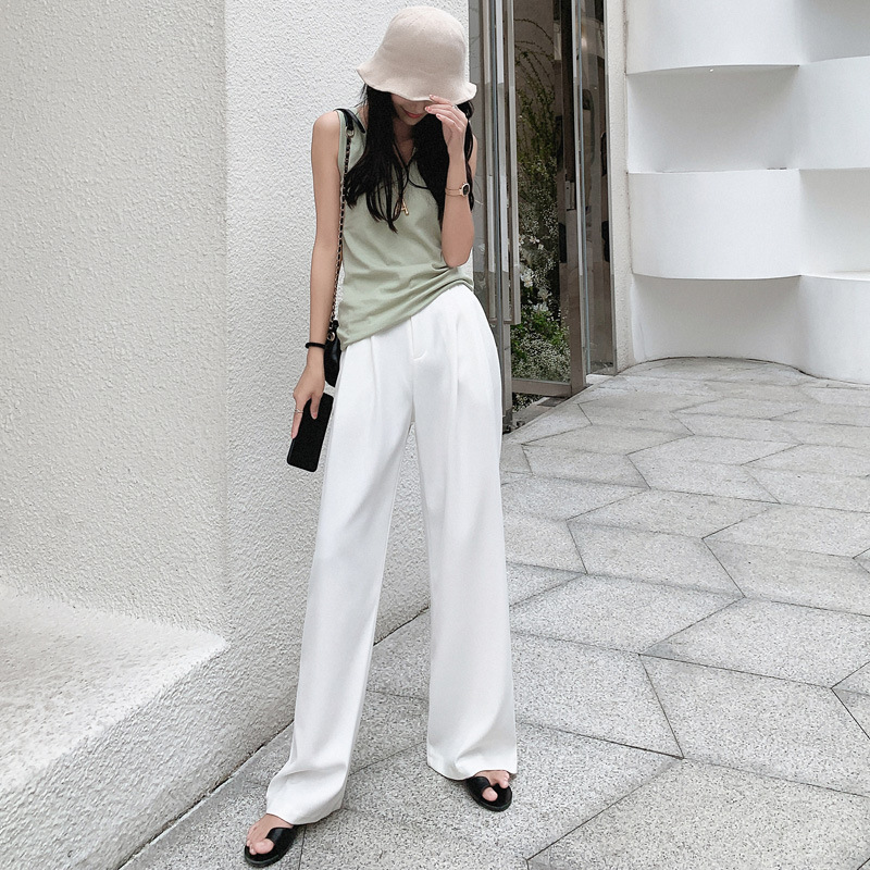 Spring New Loose Chic High Waist Korean Student Straight Suit Pants Women
