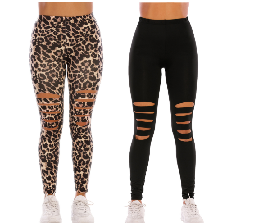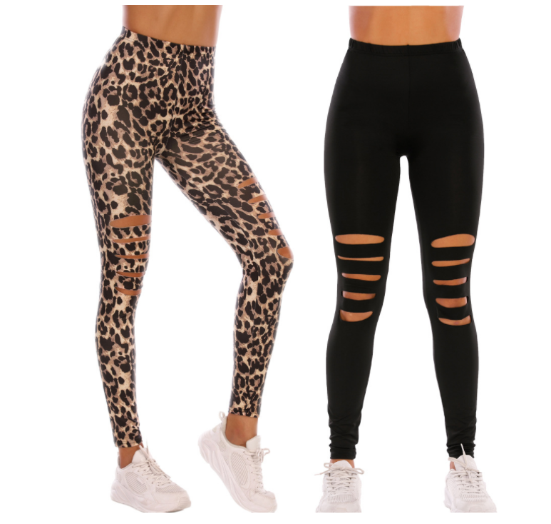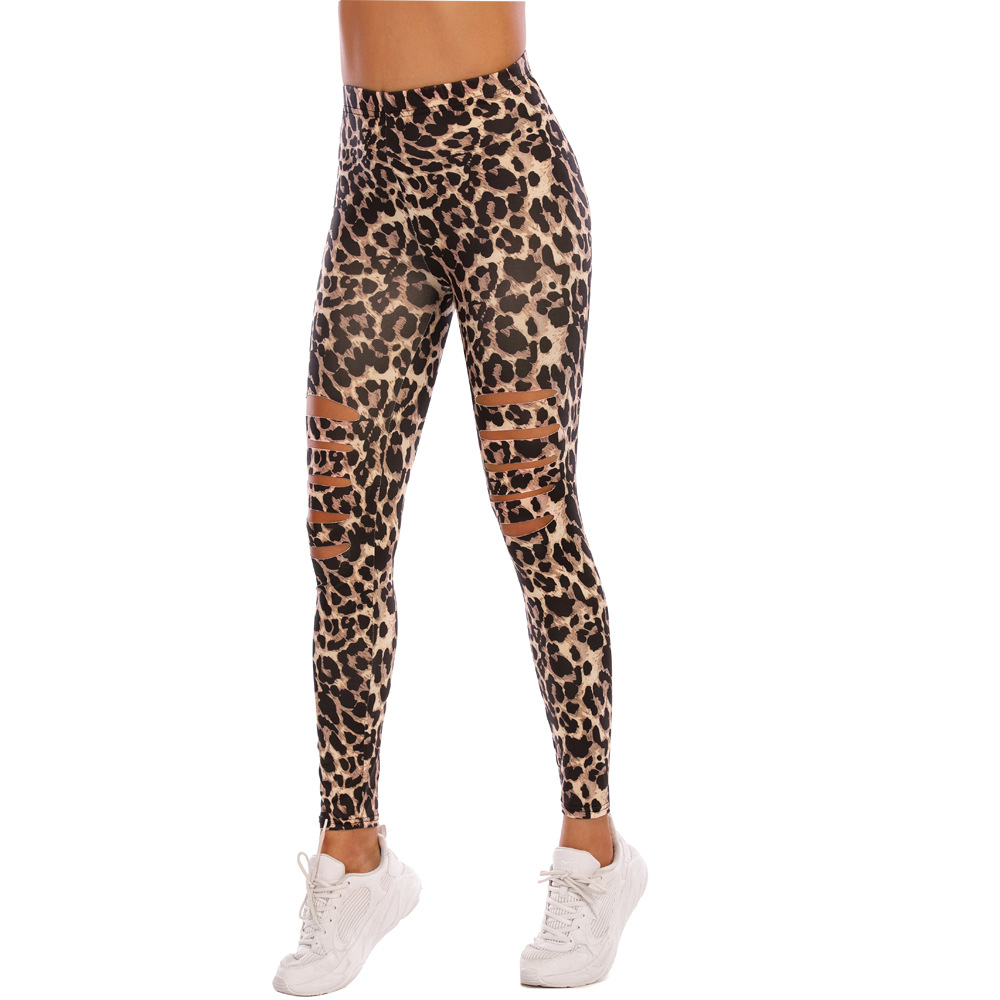 Leopards printed tight ripped leggings
