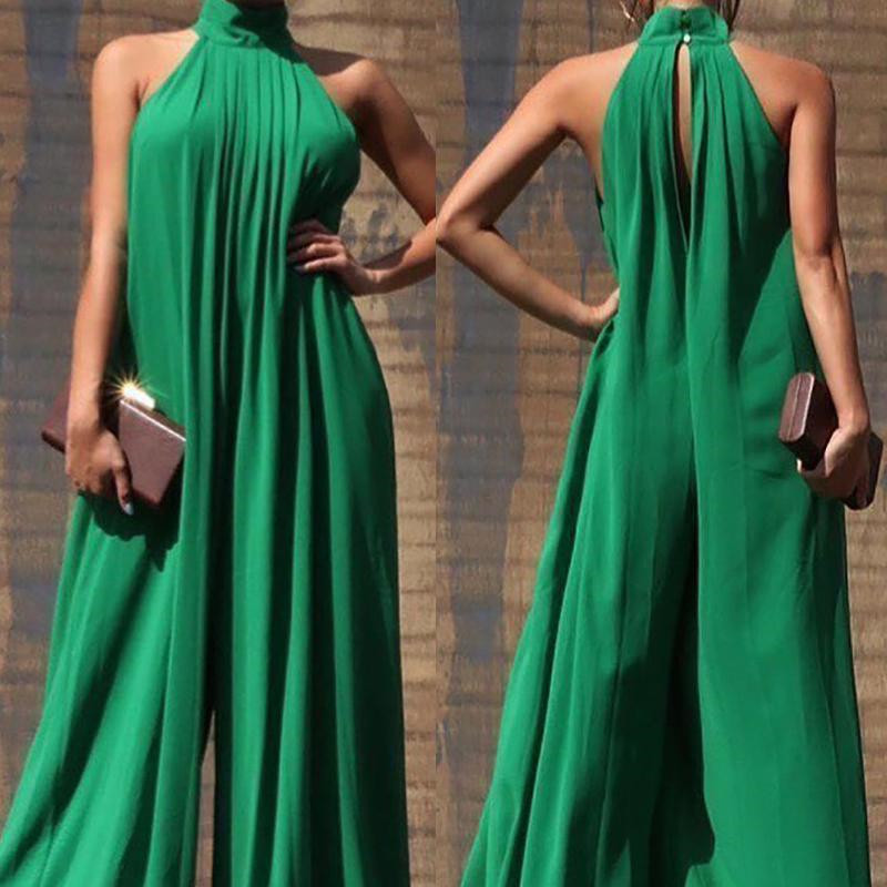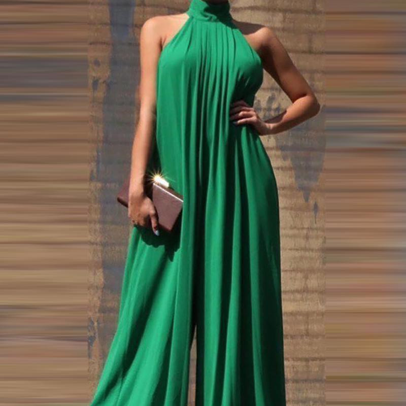 Sleeveless High-neck Loose Fit Wide-leg Pants