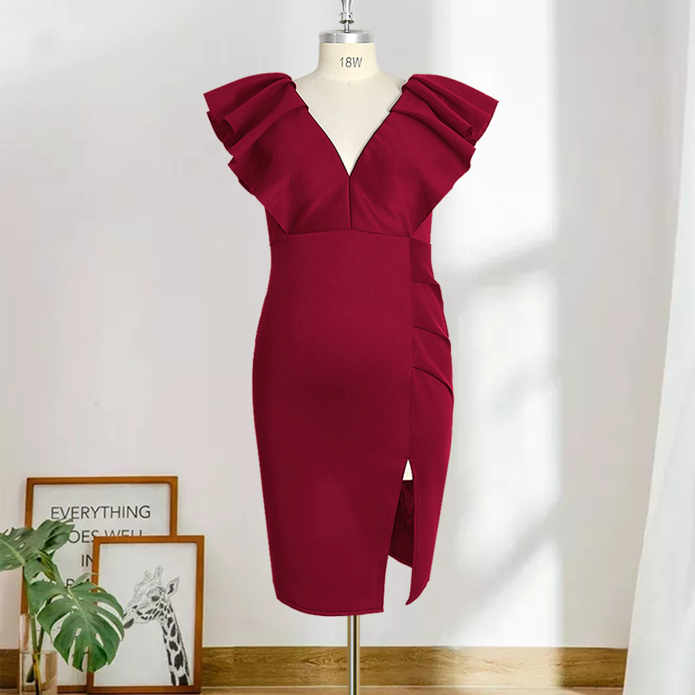 Sexy Halter Wood Ears Slit High Waist Elegant Banquet Dress