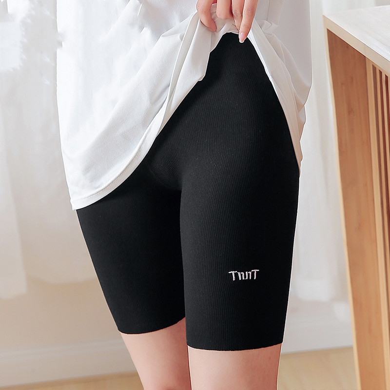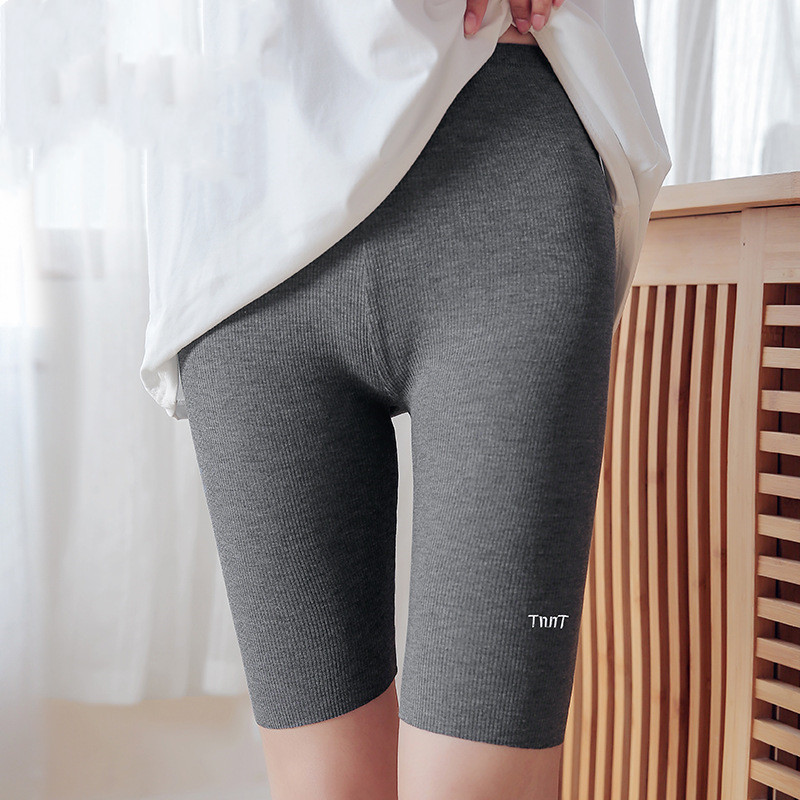 Thin Threaded Five-point Leggings Women's Outer Wear High Waist Elastic