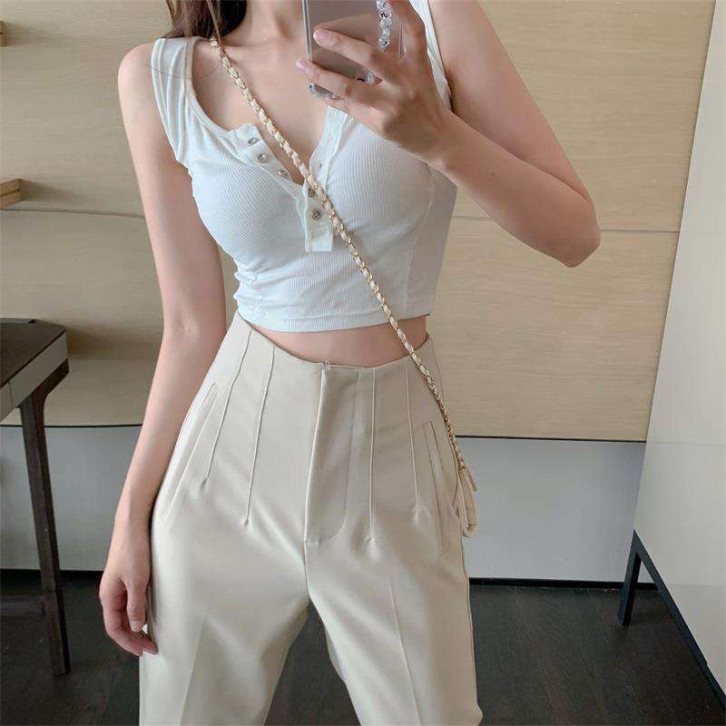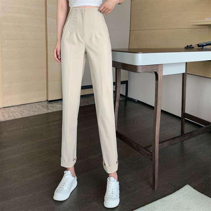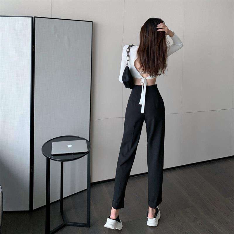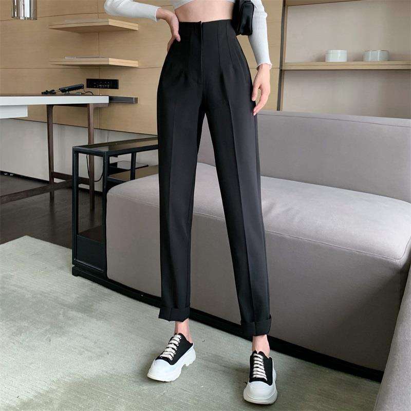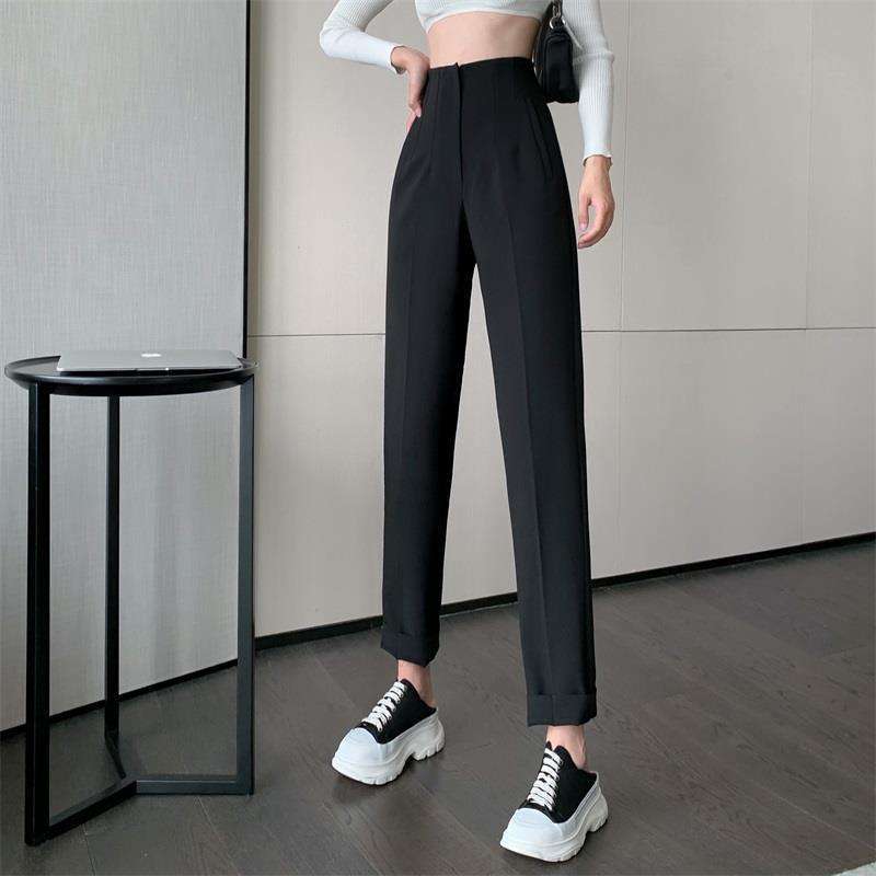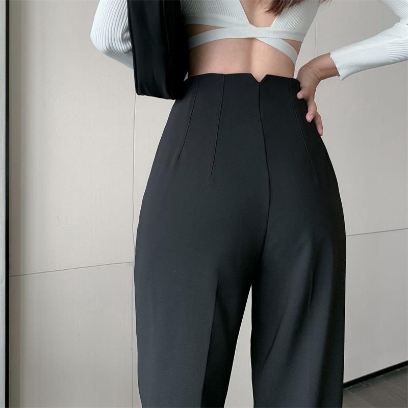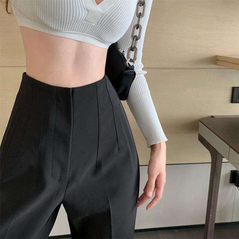 Women's Black Casual Summer High Waist Loose Suit Pants