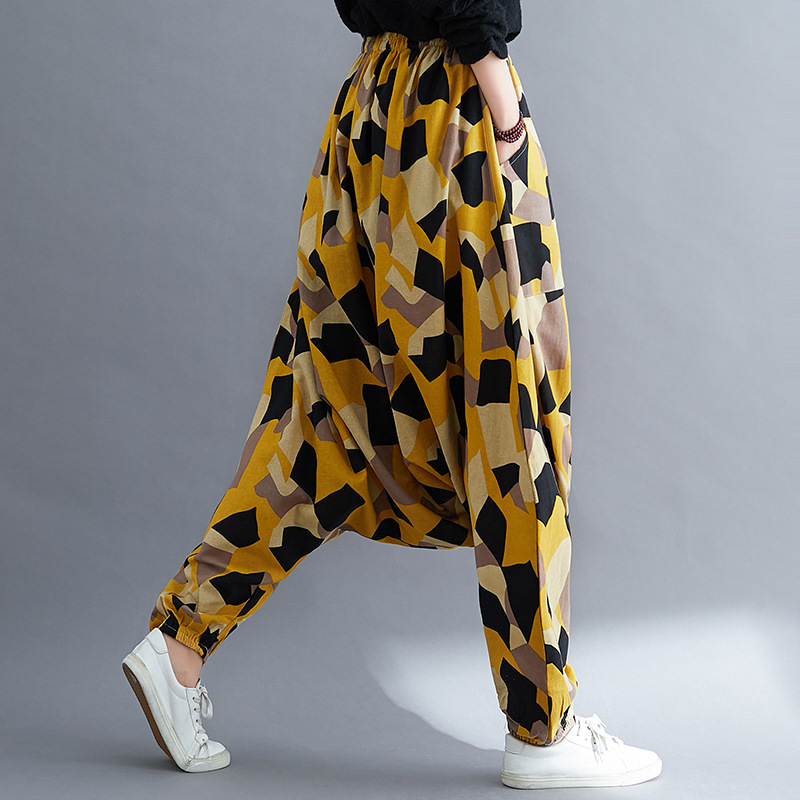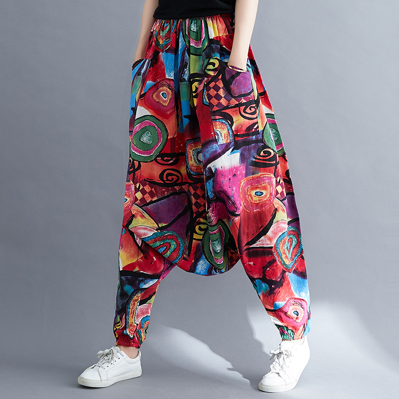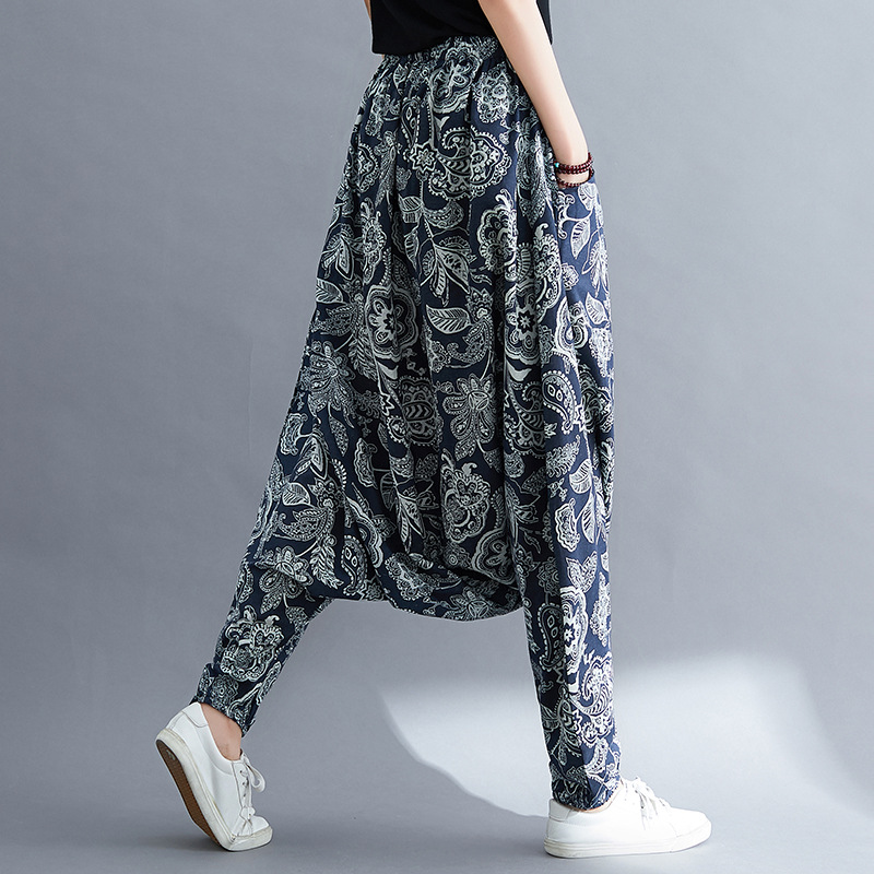 Folk Style Loose Cotton Linen Pants Crotch Knickerbockers