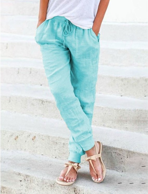 Loose Solid Color Cotton And Linen Ladies Casual Pants