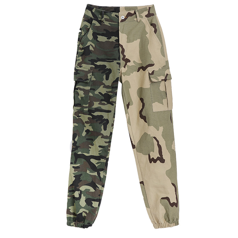 High Waist Camouflage Splicing Pants Female Contrast Color