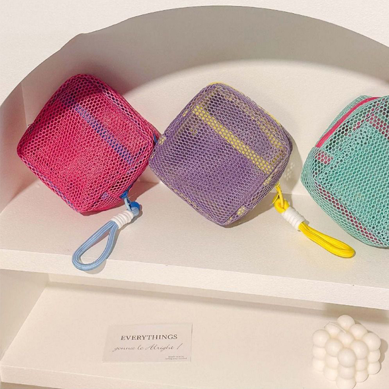 Stylish Lightweight Mesh Cosmetic Bag, Portable Square Cosmetic Storage Bag with Zipper, Multi-purpose Sundries Storage Bag