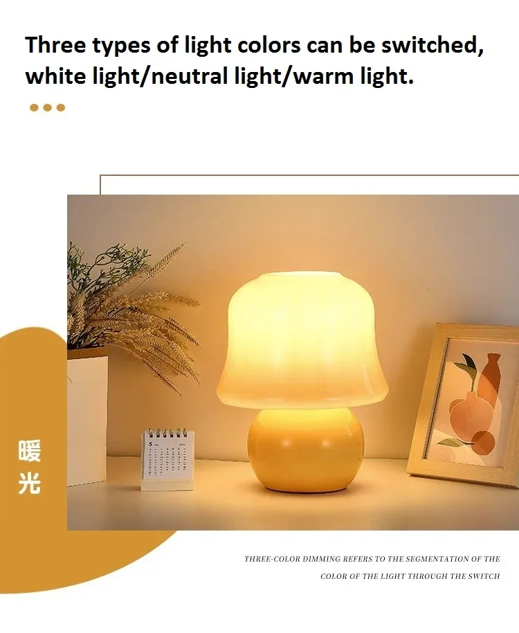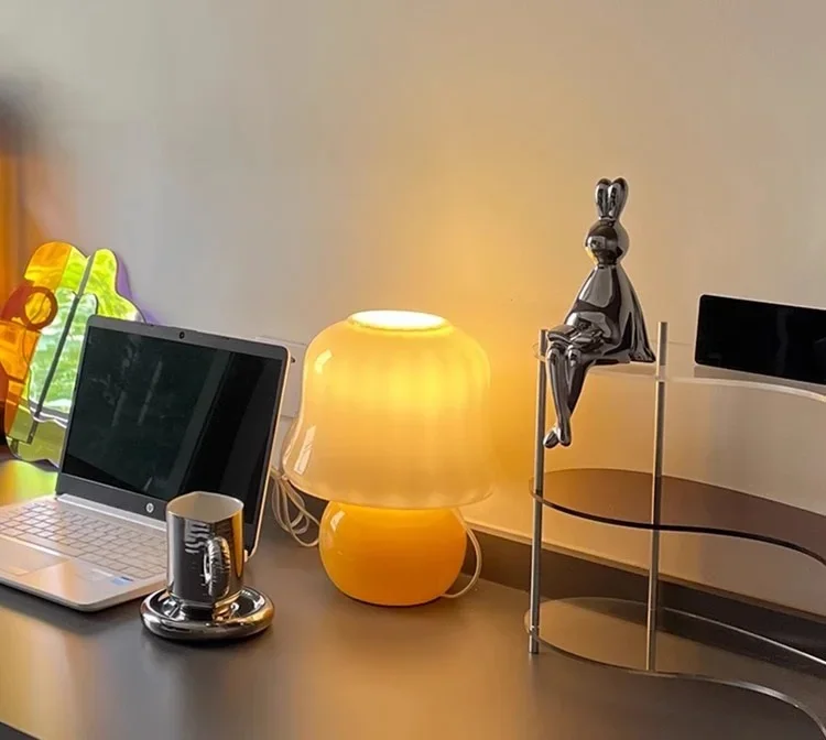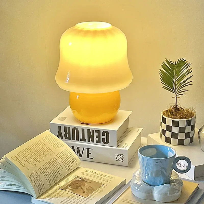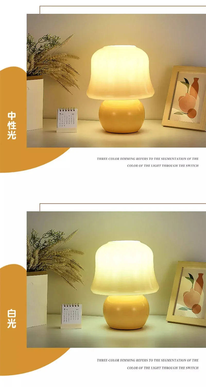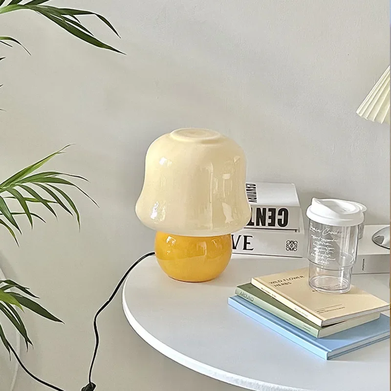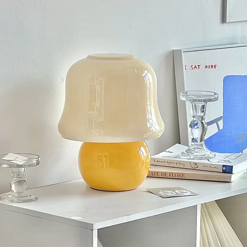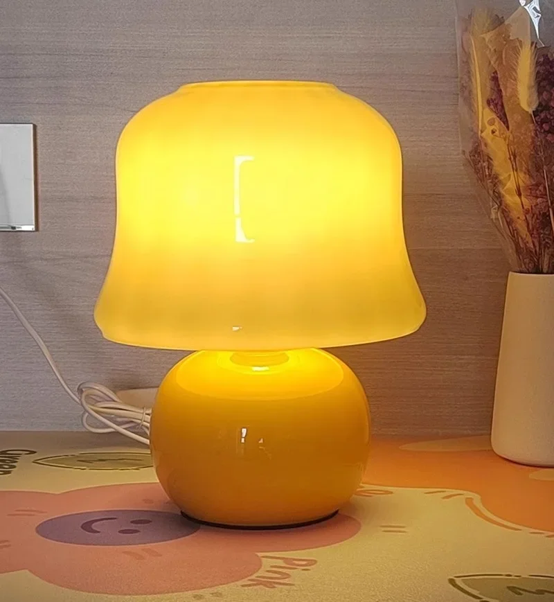 French cream table lamp mushroom gift medieval glass living room online celebrity girl advanced atmosphere bedroom bedside lamp