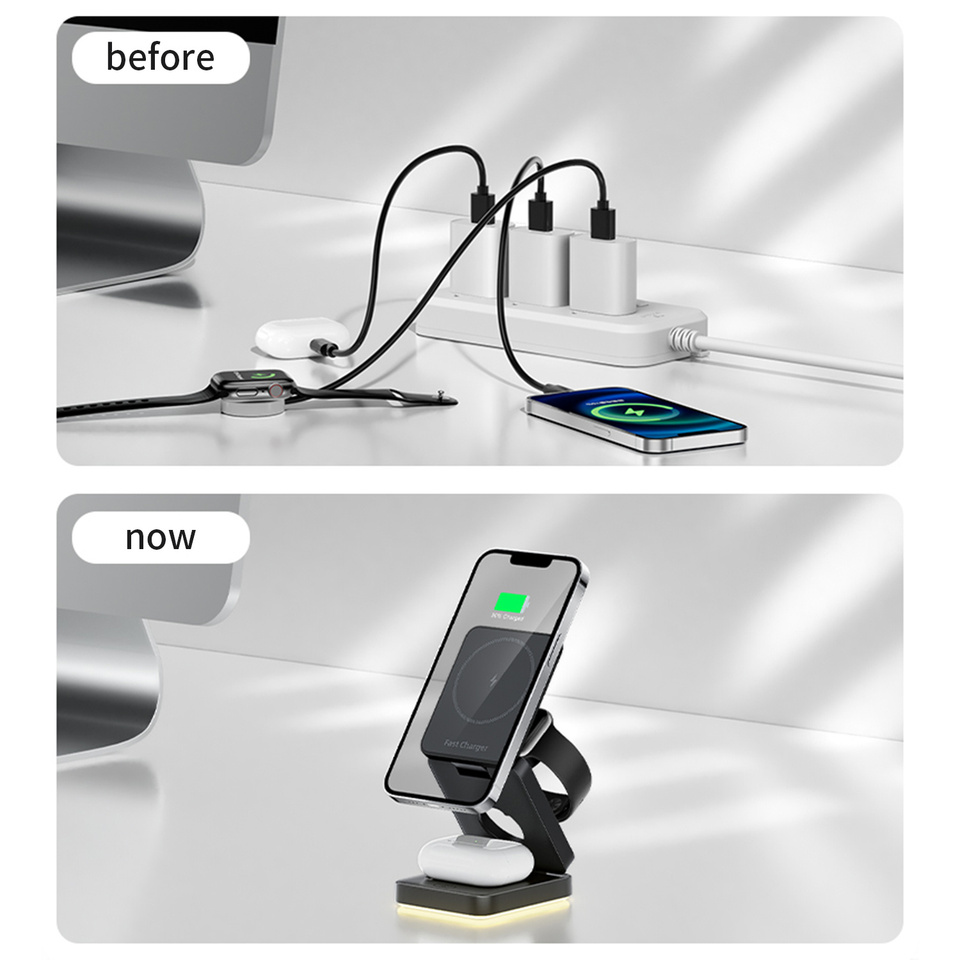 3-In-1 Wireless Charger Folding Magnetic Wireless Charger For Apple Mobile Phone Wireless Charger Mobile Phone Holder