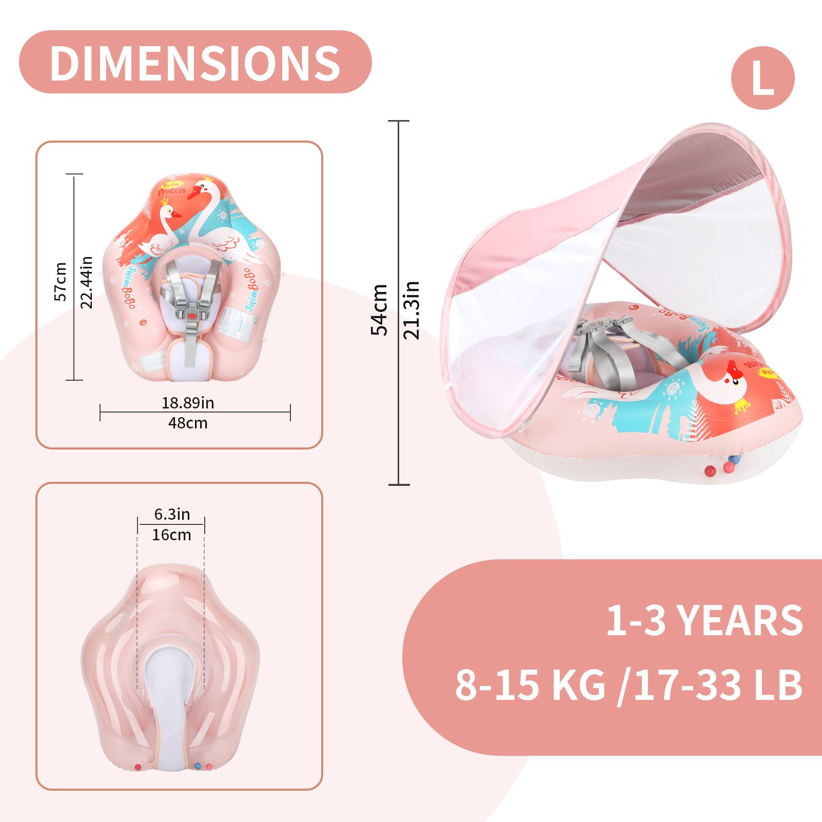 Baby swimming ring pink swan style prone ring underarm ring sun protection children's swimming ring