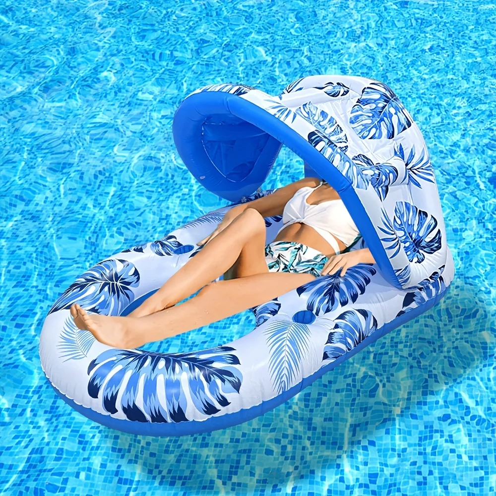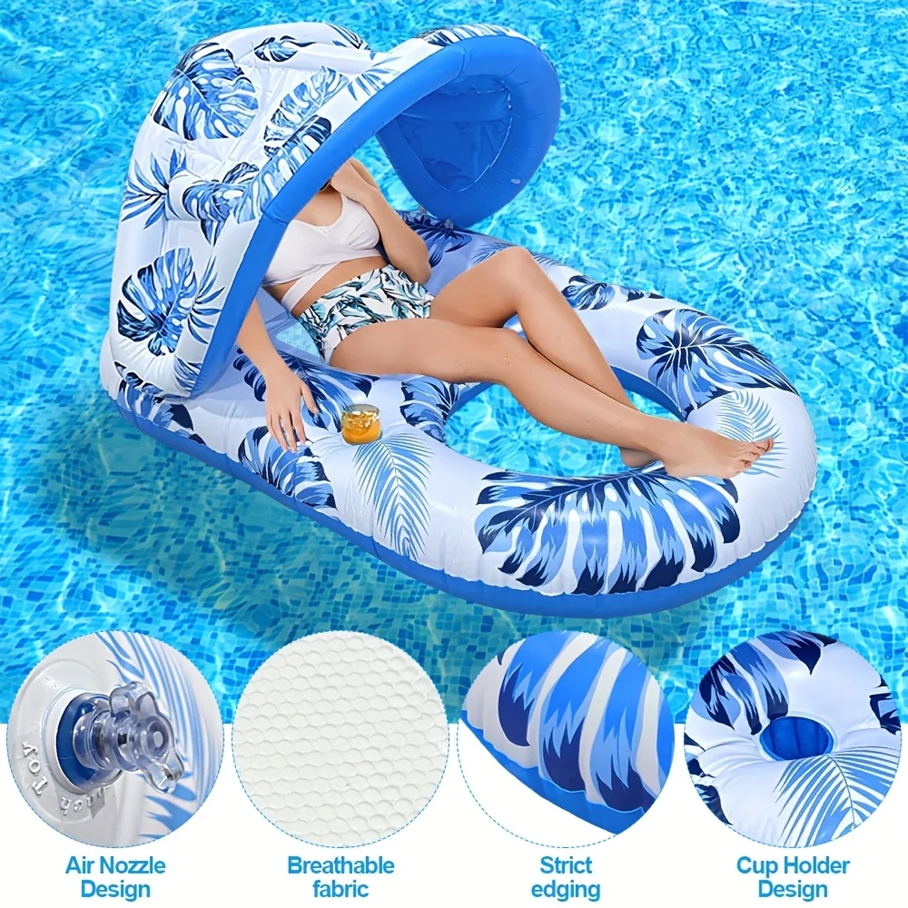 New outdoor inflatable leaf pattern lounge chair floating row multifunctional with cup holder water floating bed inflatable floating row